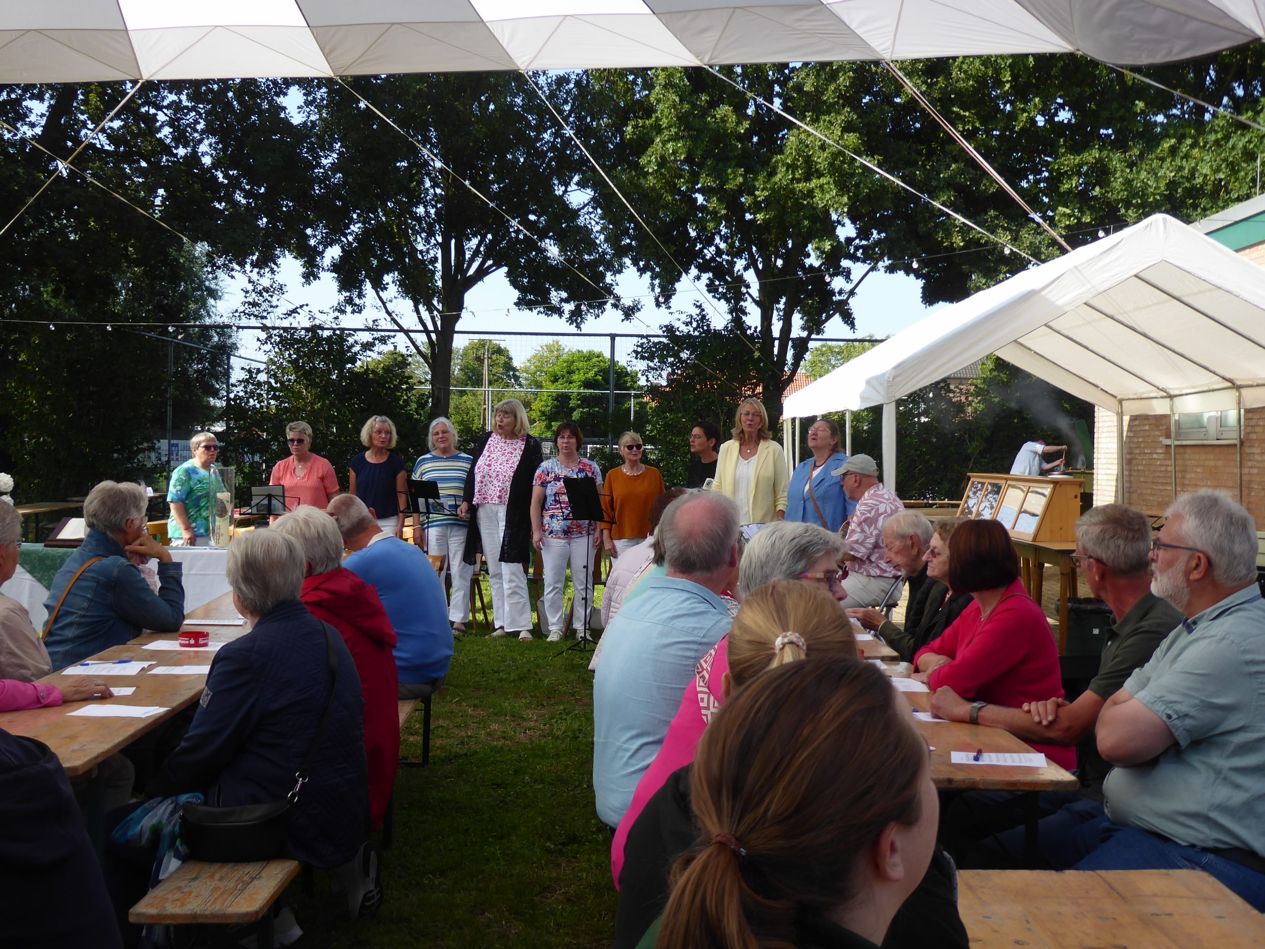 Mit der schottischen Volksweise „Highland Cathedral“ eröffneten wir das Konzert feierlich. Im Wechsel mit weltlichen Liedern folgten dann aber auch Weihnachtslieder wie „Herbei, o ihr Gläub´gen“ oder „Stille Nacht, heilige Nacht“. Diese wurden dank vorbereiteter Liedtexte vom Publikum begeistert mitgesungen.